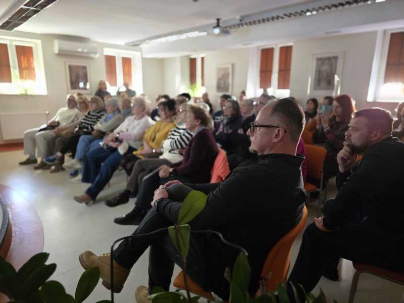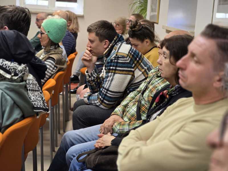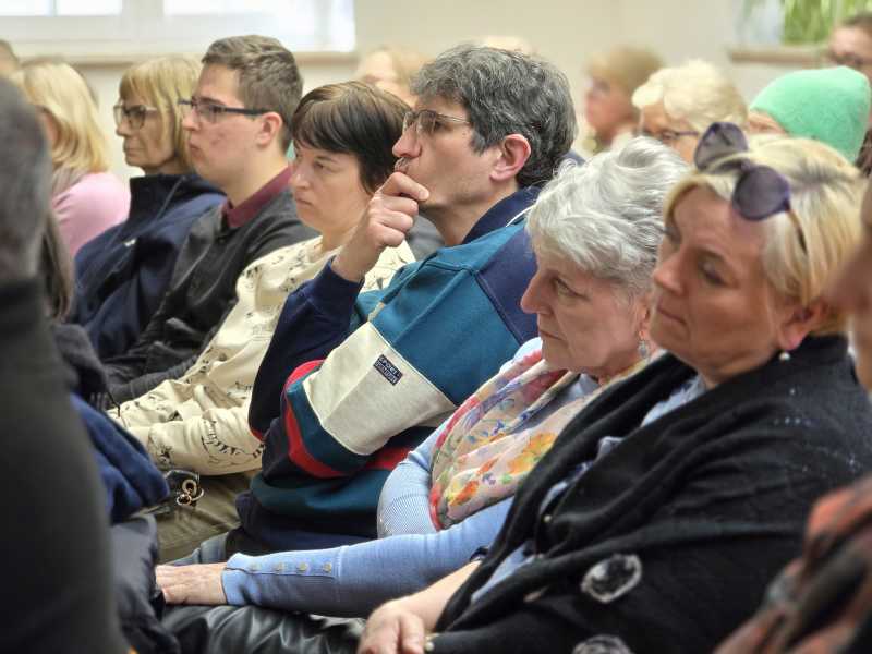 Spotkanie rozpoczęło się od projekcji najnowszego reportażu Michała Przedlackiego, zrealizowanego na Ukrainie. Materiał wprowadził wszystkich w poważny, refleksyjny nastrój i stał się punktem wyjścia do dalszej rozmowy o realiach wojny widzianej z bliska.